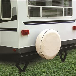 Vinyl cover helps keep dirt, rain and sun away from spare tire. Heavy nylon thread helps ensure weatherproofing of seams. Color: Colonial White.