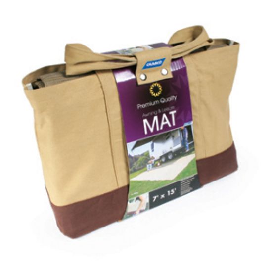 This attractive mat is made from a heavy-duty woven poly-vinyl material which allows snow & rain to drain through. Reinforced corners with rust resistant grommets provide an easy way to secure it using included ground stakes. Non-reversible fabric mat includes a heavy canvas storage bag for storage & transport. Easily cleaned with soap & water.