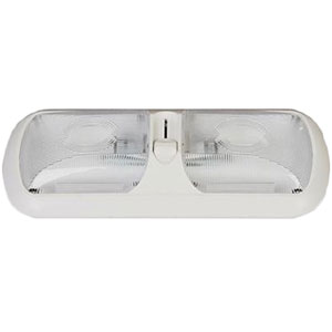 This sleek Euro-style interior light is energy efficient & dimmable to 285 lumens. The bright white bulb is FCC compliant and polarity sensitive. Double Euro-style light is 11.5 inch length x 5 inch width. Requires eight mounting screws (not included).