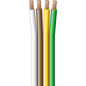 PVC-coated, 4 conductor copper wires are specially designed for RVs and boat utility trailers. Withstands temperatures up to 140°F. Colors:. white, brown, yellow, green.
