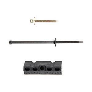 Universal type hold-down with side base mount wedge.