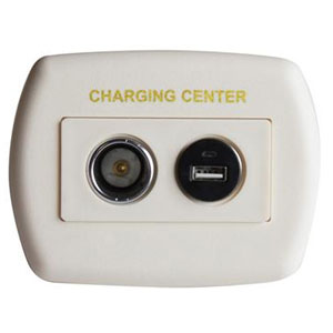 Eurostyle USB and 12 volt charger metal body assembly. Ivory color with hidden screw installation. Great for phones, MP3 players, Sky Caddies, GPS units and more. Measures 5 inch wide x 3.75 inch high x 2.62 inch deep. Easy to install and RoHS compliant.